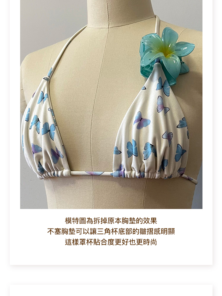 | 平口款式: | 三角罩杯款式: | 連身款式: |