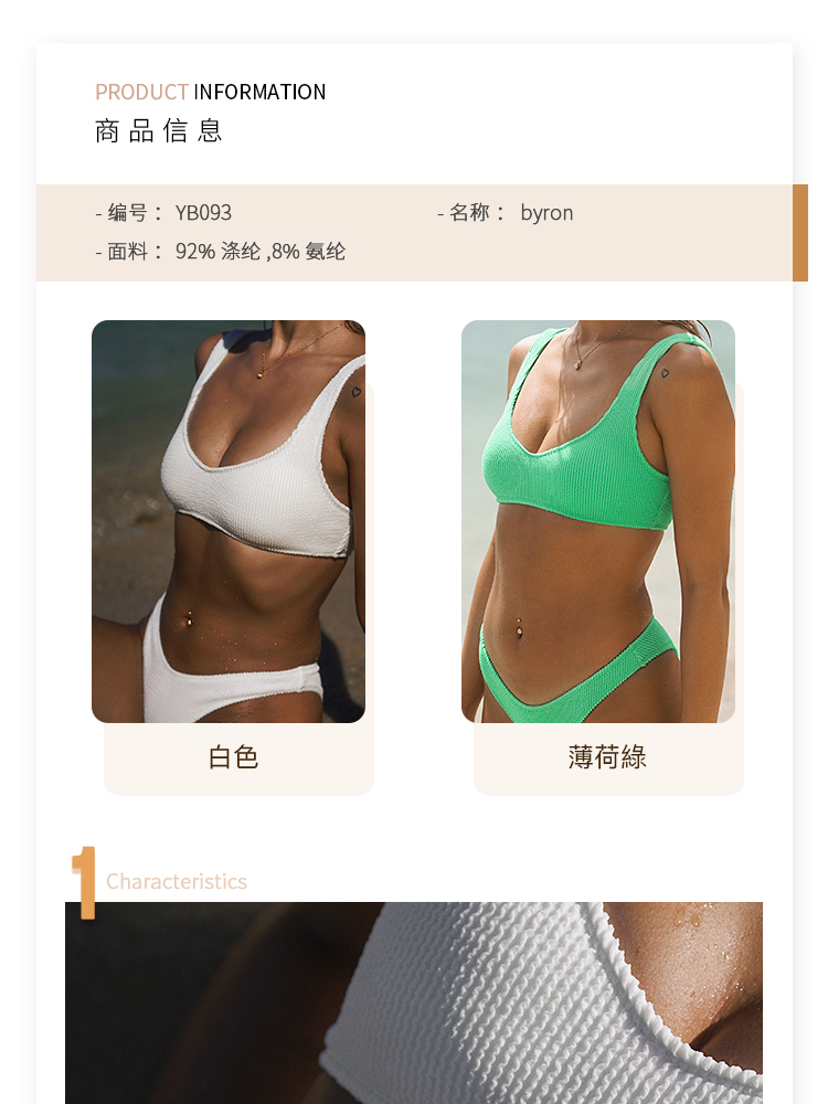 | 平口款式: | 三角罩杯款式: | 連身款式: |